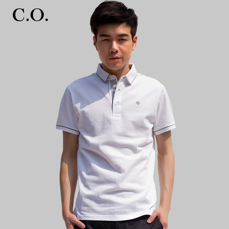 男士白色短袖T恤/时髦翻领纯棉短T c.o.正